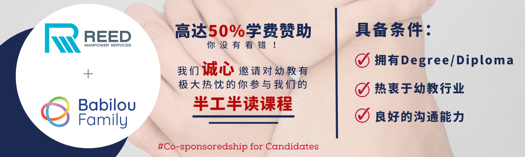 Co-Sponsorship from Reed Manpower Services’ Partner 由Reed Manpower Services的合作幼儿园提供的学费赞助